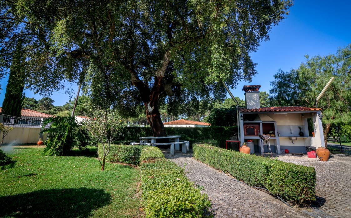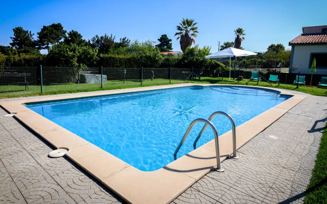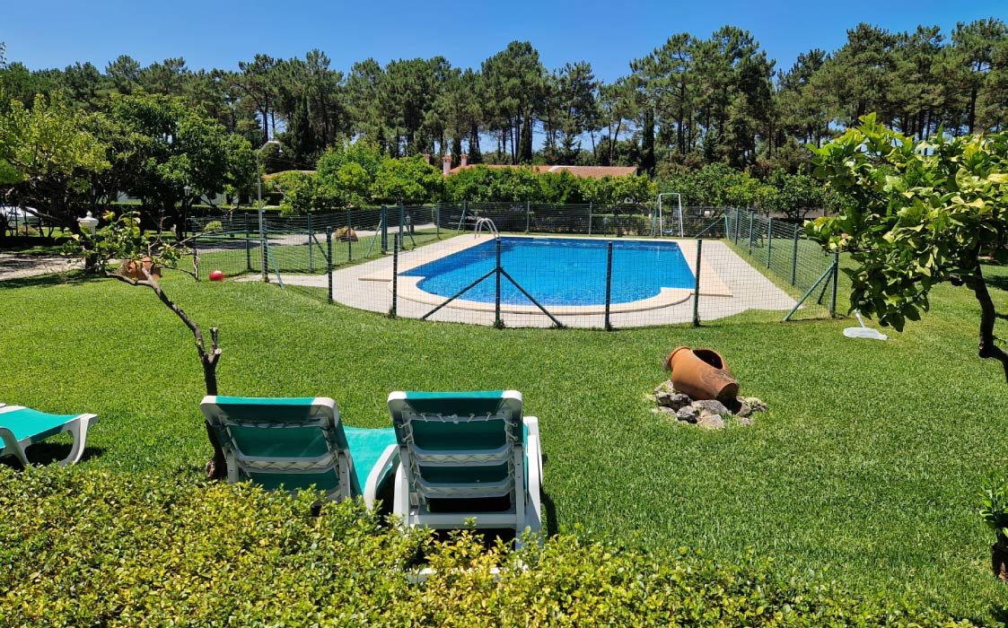 No exterior existe a piscina, a zona para refeições e grelhados ao ar livre